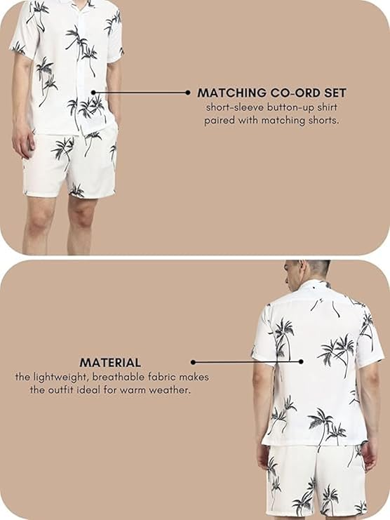 • Pattern:- Fancy Palm Tree Printed Shirt & Shorts combo || Fit Type:- Regular Fit
